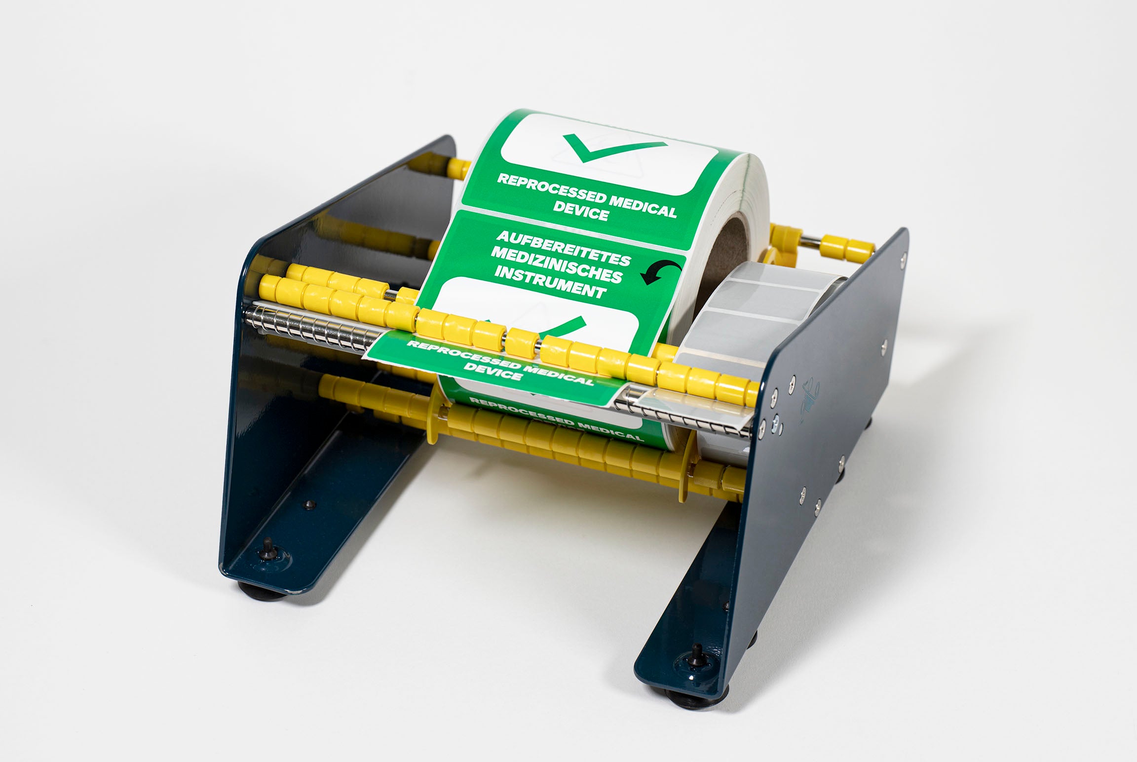 De etikettendispenser als meervoudige dispenser (max. 216 mm totale breedte) is gemaakt van metaal en zeer belastbaar. De dispenser is geschikt voor etiketten met een kerndiameter tot 77 mm.