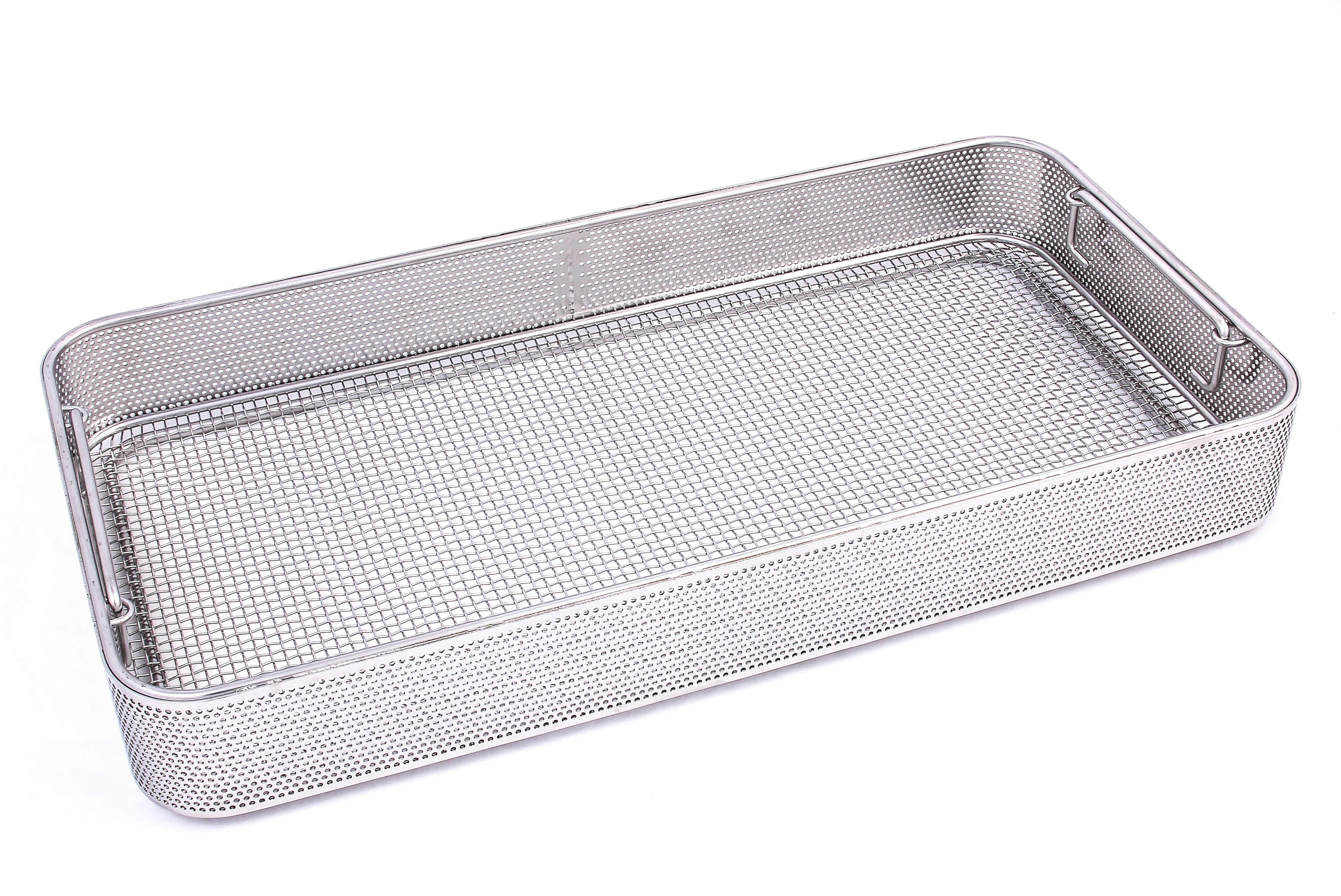 Alle Lochblechsiebkörbe werden aus hochwertigem Edelstahl (Werkstoff 1.4301) gefertigt, elektrolytisch poliert, gratfrei verarbeitet und sind aufgrund des Bodenrahmens stapelbar.